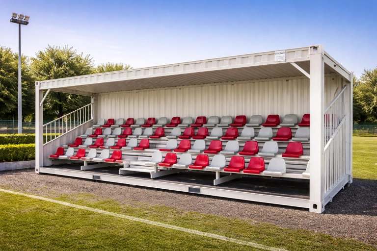Tribune modulari sicure e resistenti, ideali per impianti sportivi, eventi e manifestazioni temporanee.