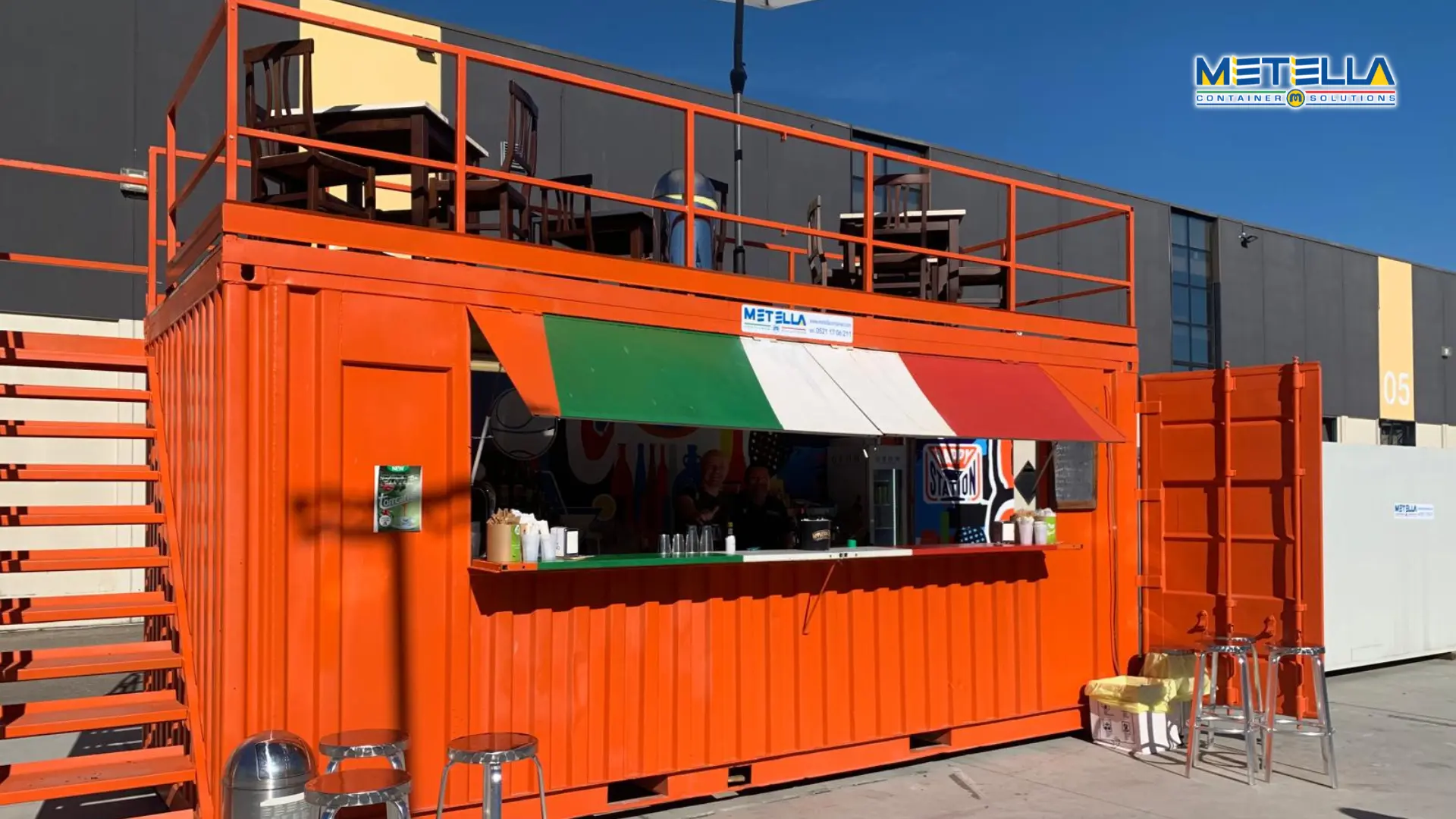 Il punto di forza della struttura è la terrazza superiore da 15 mq, pensata come area relax panoramica dove i clienti possono sedersi, bere qualcosa e godersi l’ambiente circostante. Questo spazio aggiuntivo aumenta notevolmente la capacità di accoglienza e valorizza l’esperienza del cliente, trasformando il chiosco in un vero punto di ritrovo.