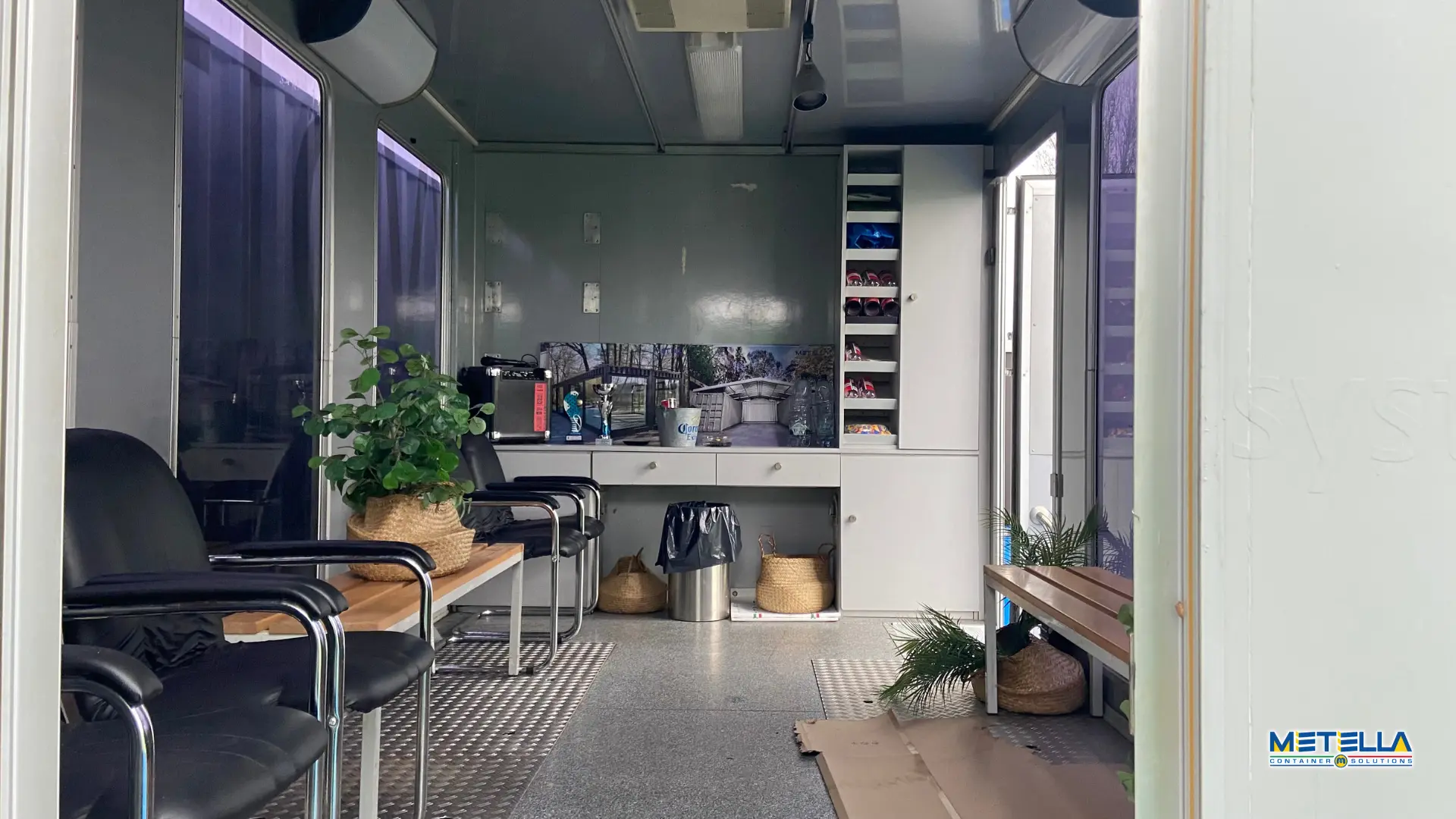 La dotazione comprende impianto elettrico, illuminazione e predisposizioni tecniche, per un utilizzo immediato e sicuro. Le finiture interne sono selezionate per garantire facilità di pulizia, resistenza e un aspetto curato, adeguato a contesti professionali.