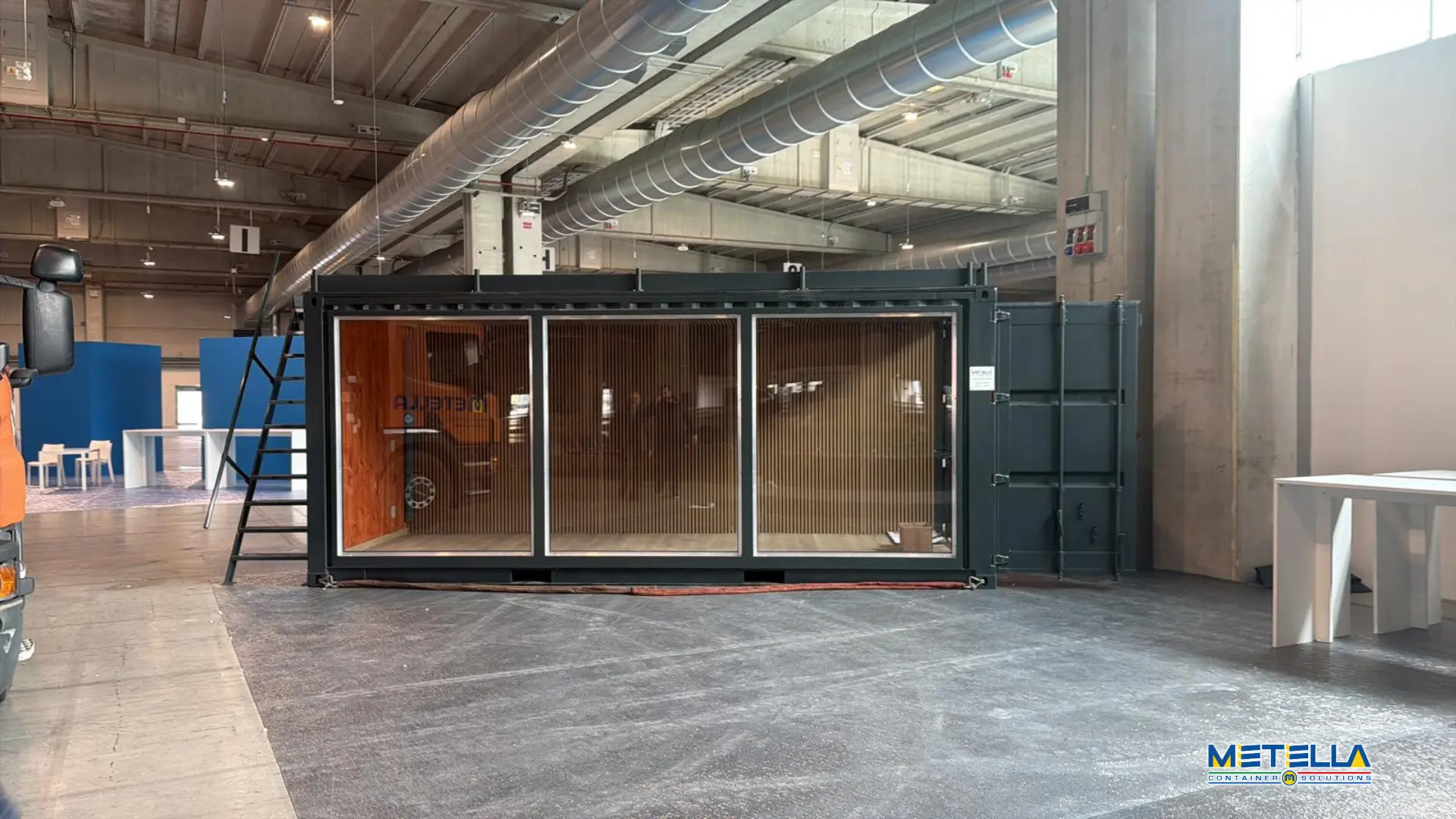 Il modulo container con vetrata frontale e ampia terrazza è una soluzione moderna e di forte impatto visivo, progettata per creare spazi accoglienti e funzionali destinati a eventi, fiere, manifestazioni e attività promozionali. La struttura combina il design contemporaneo del container con grandi superfici vetrate e uno spazio esterno dedicato, offrendo un ambiente ideale per accogliere visitatori e valorizzare prodotti o servizi.